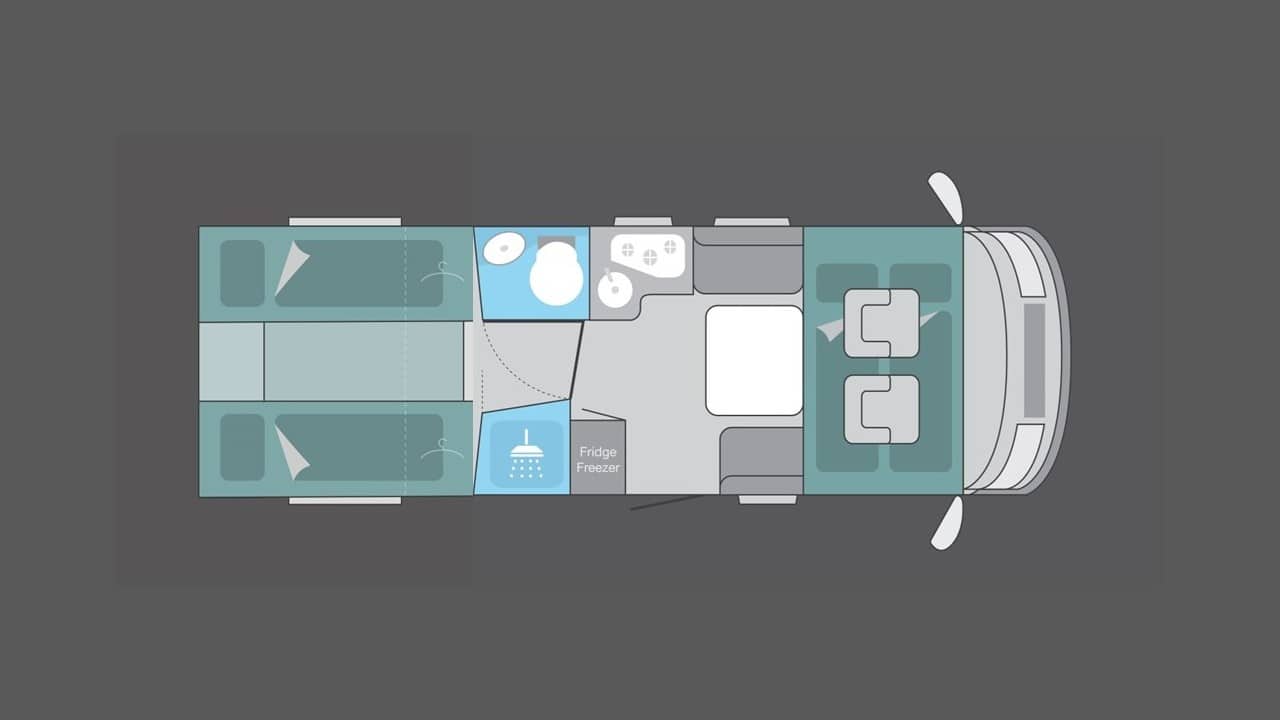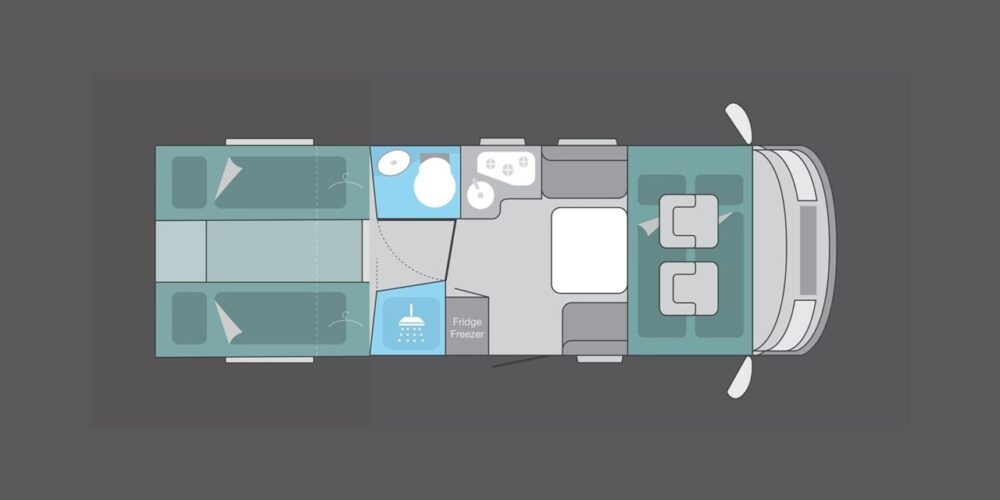 This stunning Pistachio Green GlamperRV DBL was first registered in May 2024 and is currently on the GlamperRV hire fleet. It is available from October 2025 with estimate mileage of 20,000 miles however can also be made available to the buyer for use prior to October (subject to contract). The 2024 GlamperRV DBM is a 4 berth, 7 4 metre long, luxury A class with rear twin beds (which convert into a super large double) over a large garage, open-plan lounge with bench seats, a drop down double bed over the cab and comes packed with many extras as detailed on the specification below. As with all GlamperRV it is totally self sufficient thanks to solar panel, twin leisure batteries and invertor and comes in the popular Pistachio Green colour with a premium light grey leather interior.